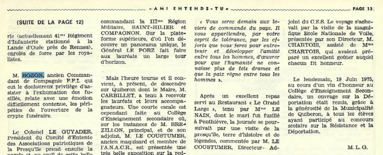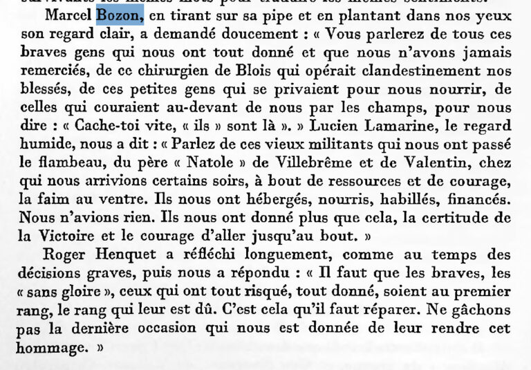 - Roger Henquet (alias “Robert” ou “Roland”) : Agent de l’O.S.S., a supervisé les opérations de résistance dans le Loir-et-Cher et travaillé en étroite collaboration avec Marcel Bozon pour organiser les groupes de sabotage et les parachutages d’armes.