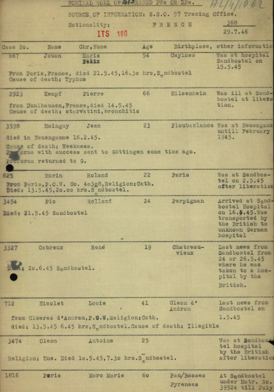 Son frère Jean transféré le 4 février 1945, arrive à Buchenwald le 6 février, et y décède le 23 février 1945.