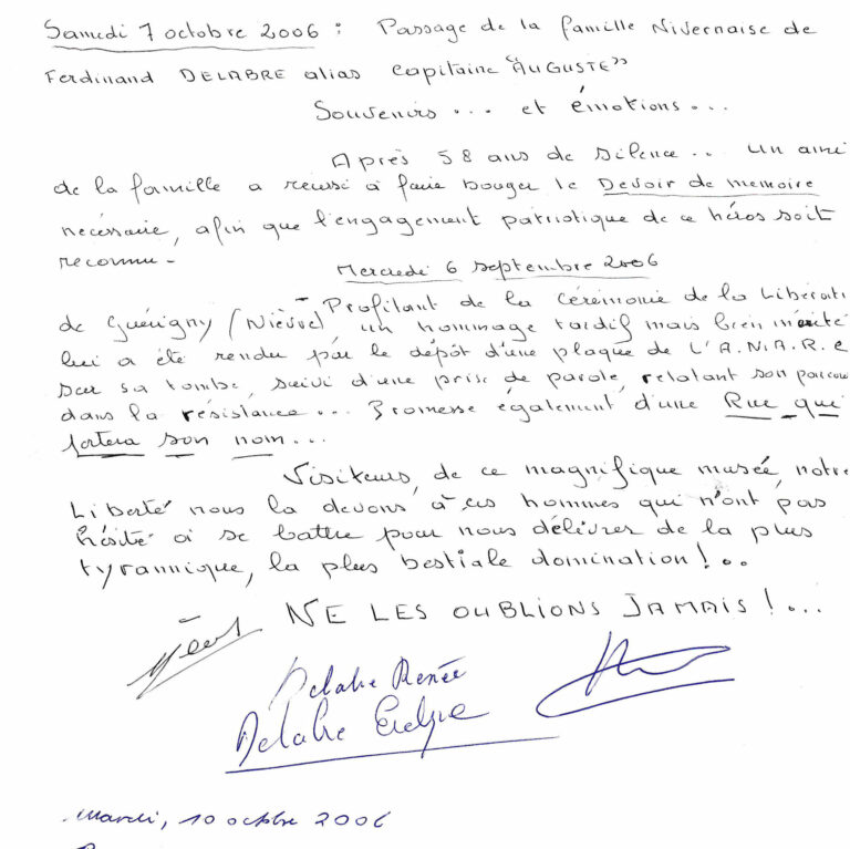 Dédicace Famille Delabre sur le livre d'or du musée.