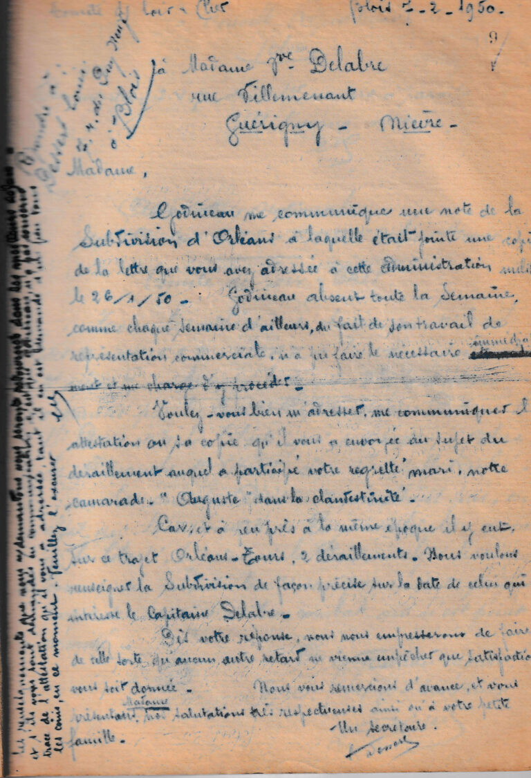 Lettre de Robert Godineau à Mme Delabre.