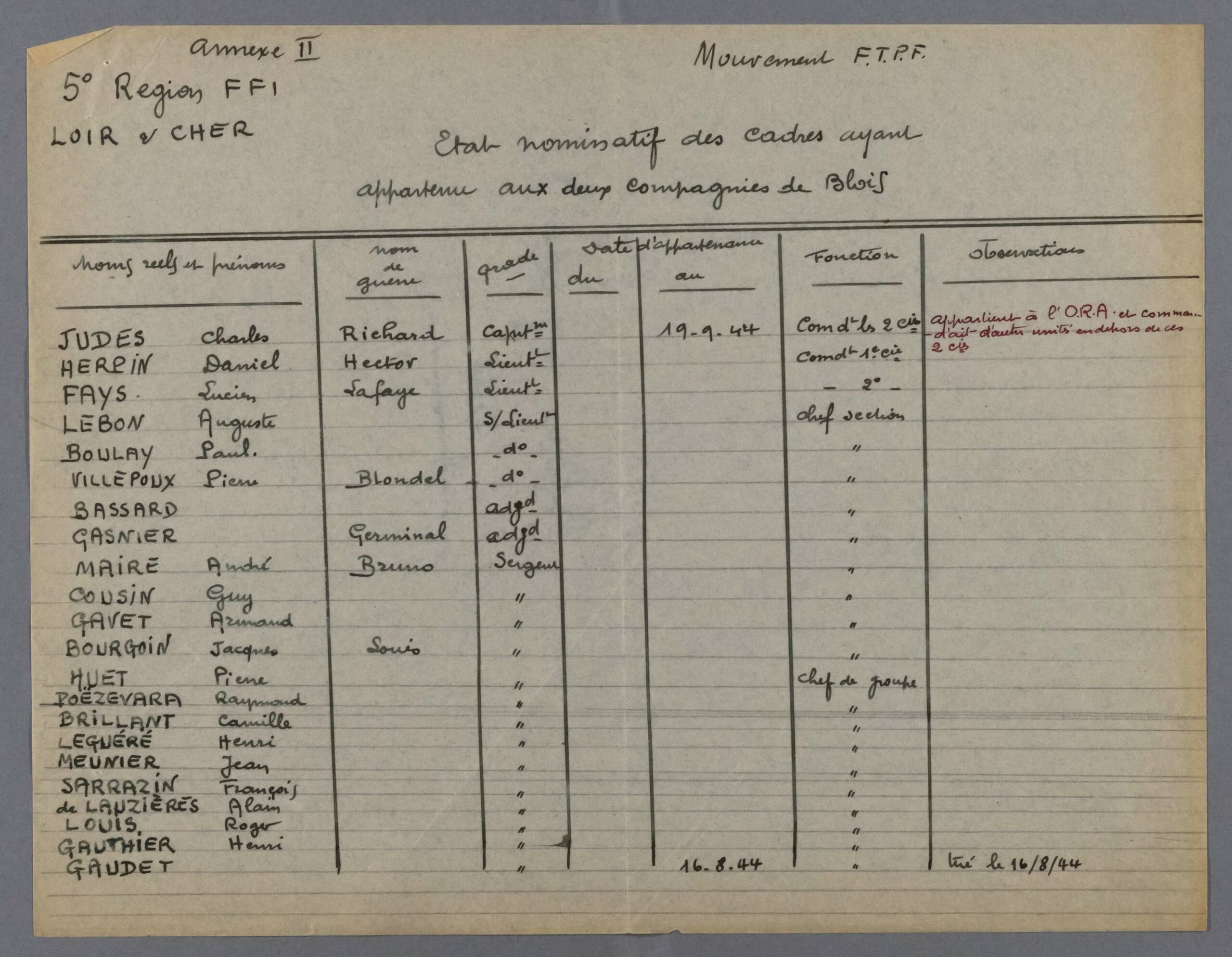 Son groupe « Auguste » contribua activement avec la section espagnole à la libération de Blois.