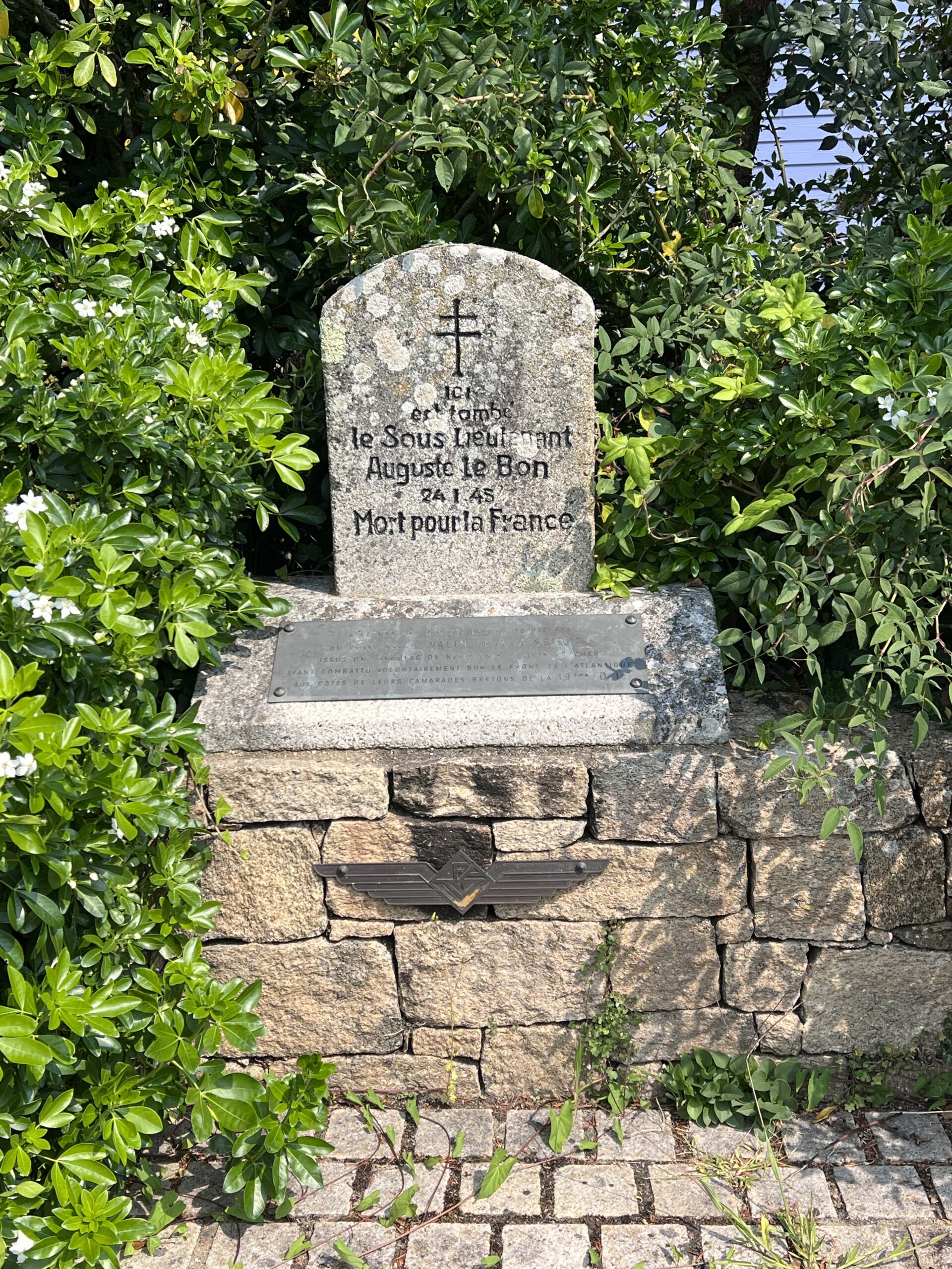 Une pierre commémorative gravée par un prisonnier allemand sculpteur, a été posée à l’endroit où il est tombé, portant l’inscription : “Ici est tombé le sous-lieutenant Auguste Le Bon, le 24.1.1945, mort pour la France.”