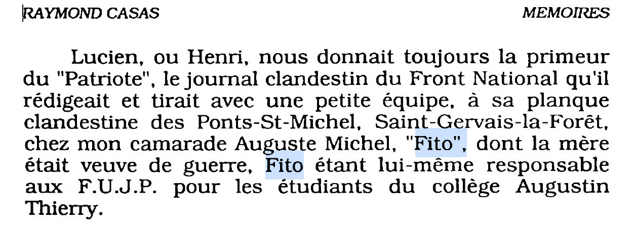 Fito, de son vrai nom Auguste Michel, est né à Saint-Fons, près de Lyon, le 24 décembre 1925, et vient habiter à Saint-Gervais avec sa famille en 1933.